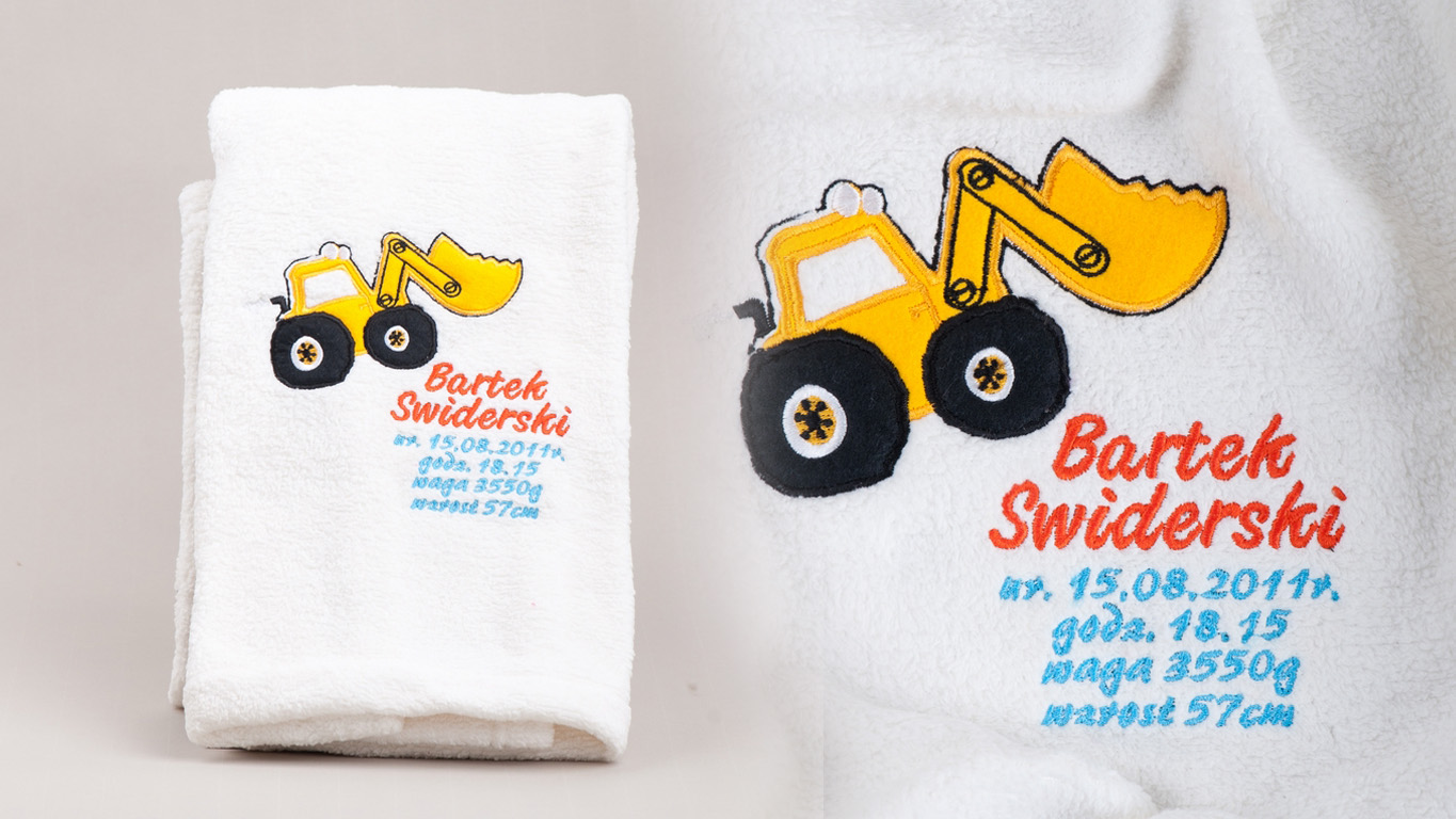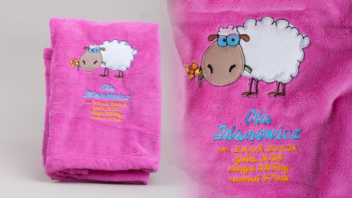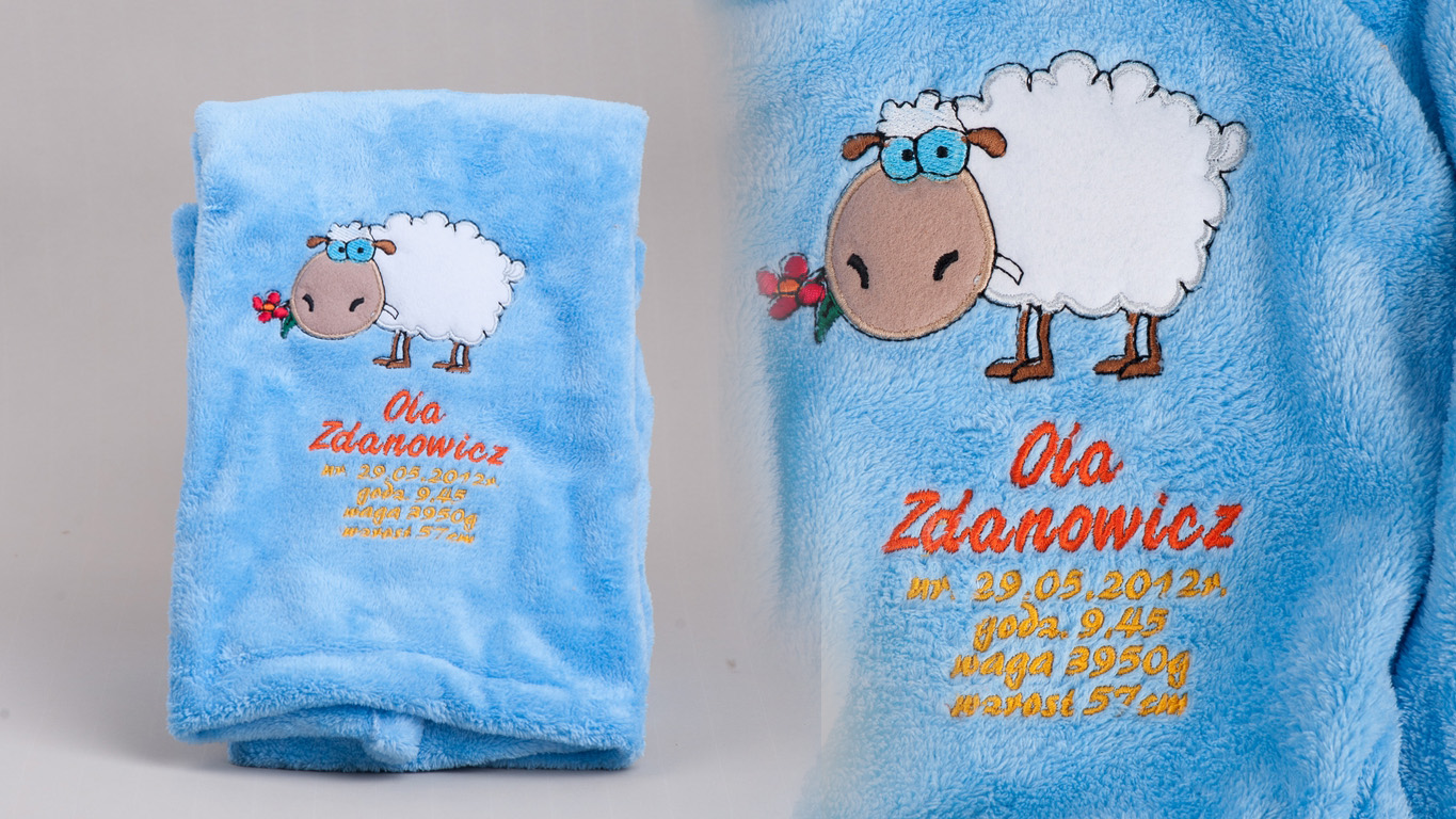 Haft umieszczony jest w lewym dolnym rogu kocyka