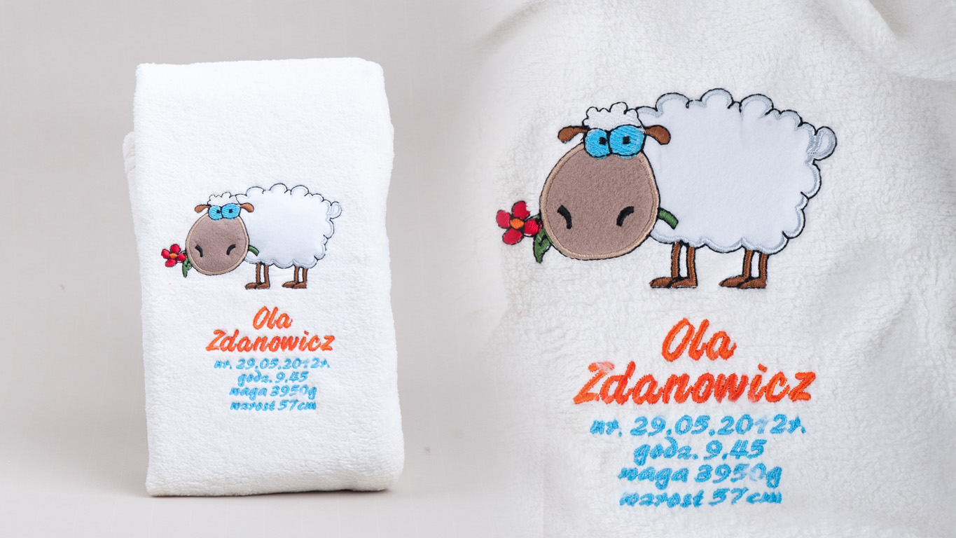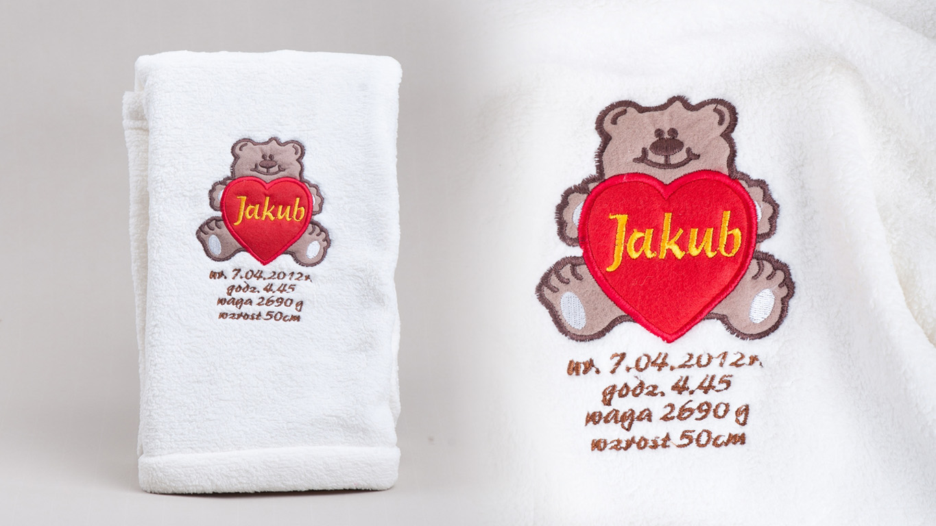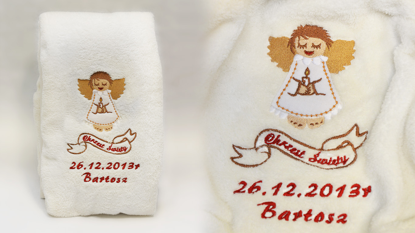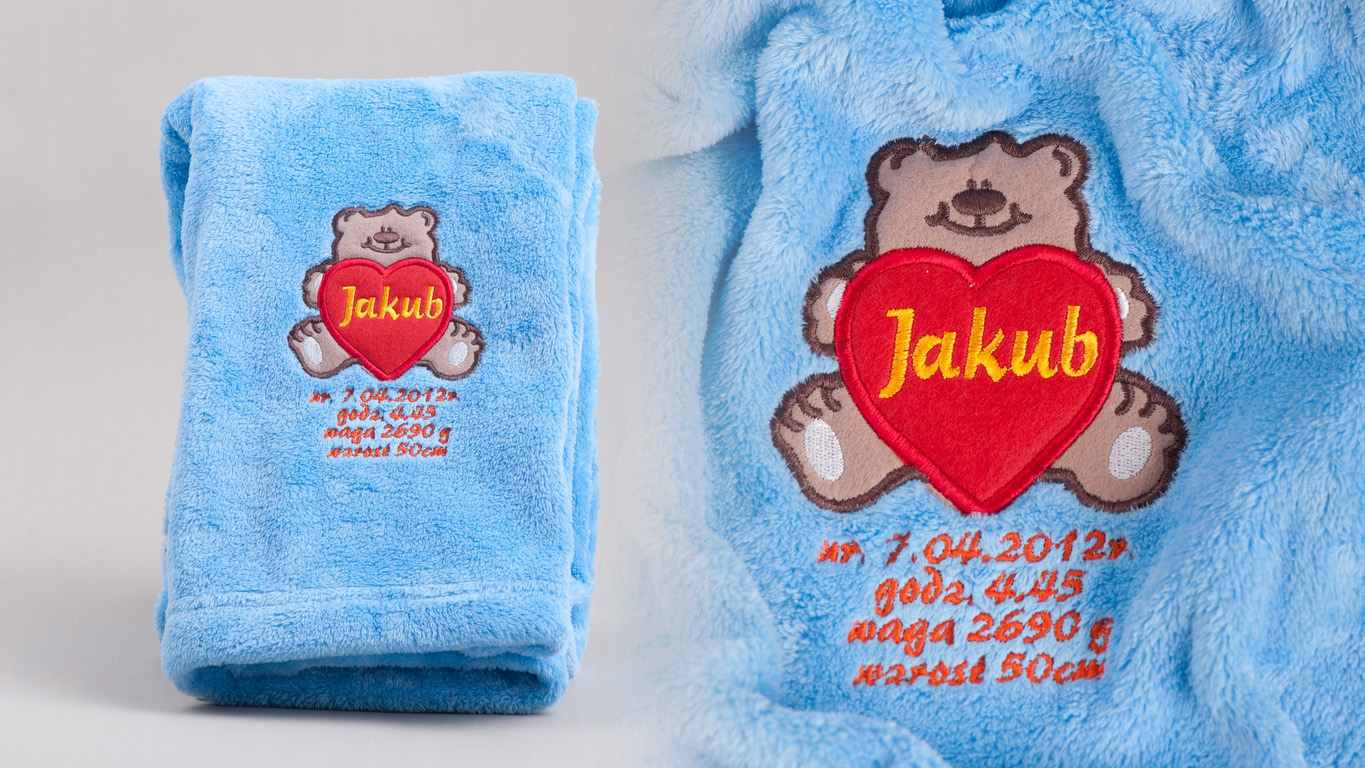 Haft umieszczony jest w lewym dolnym rogu kocyka